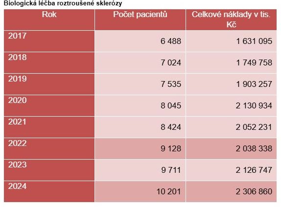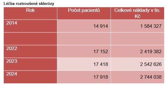 VŠEOBECNÁ ZDRAVOTNÍ POJIŠŤOVNA: Šest z deseti pacientů s roztroušenou sklerózou má biologickou léčbu. Jde o třetí nejrychleji rostoucí diagnostickou skupinu