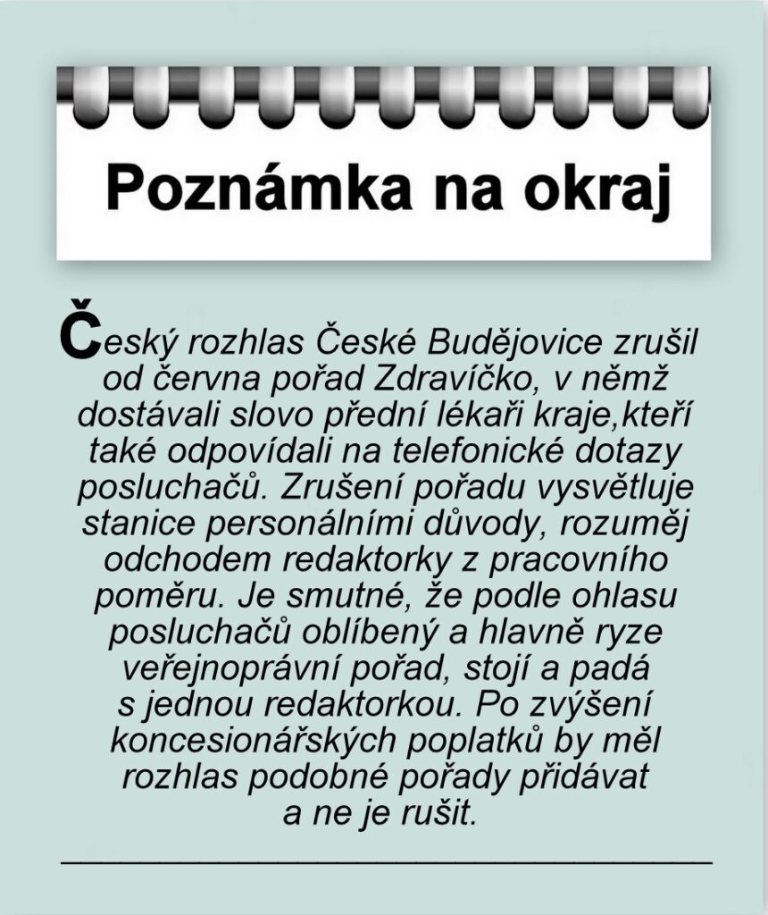 JIŽNÍ ČECHY: Poznámka na okraj – Zdravíčko