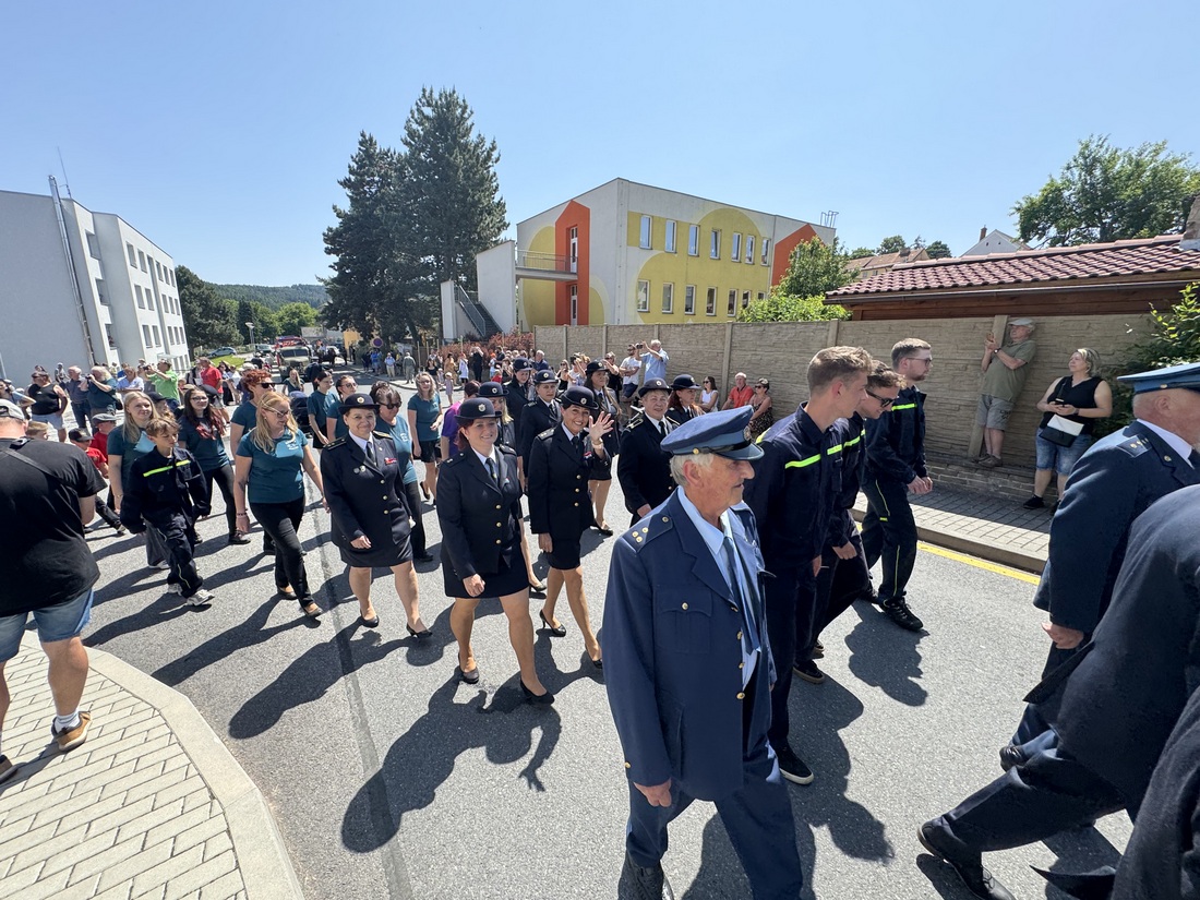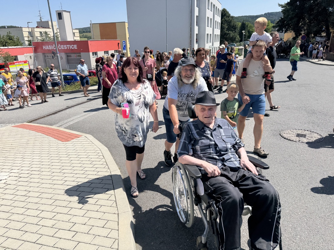 Slavnostní průvod od hasičárny na zámecké nádvoří vedla dechová hudba pod vedením Jardy Pašavy. Jeho součástí byla i přehlídka historické a současné techniky čestických hasičů, včetně koňské stříkačky z roku 1887, první motorové stříkačky z roku 1939 zvané Stratílek nebo legendární Praga RN z roku 1955, kterou čestičtí hasiči letos pečlivě zrenovovali. Za zmínku stojí, že na repasi vozidla strávili stovky hodin ve volném čase Michal Krásl, Vašek Kvěch a Vojtěch Petráš. Legendární „Erena“ patřila původně čestickým hasičům, už mnoho let je součástí depozitáře Pošumavského hasičského muzea Stachy, tam se po oslavách a zrenovovaná zase vrátí.