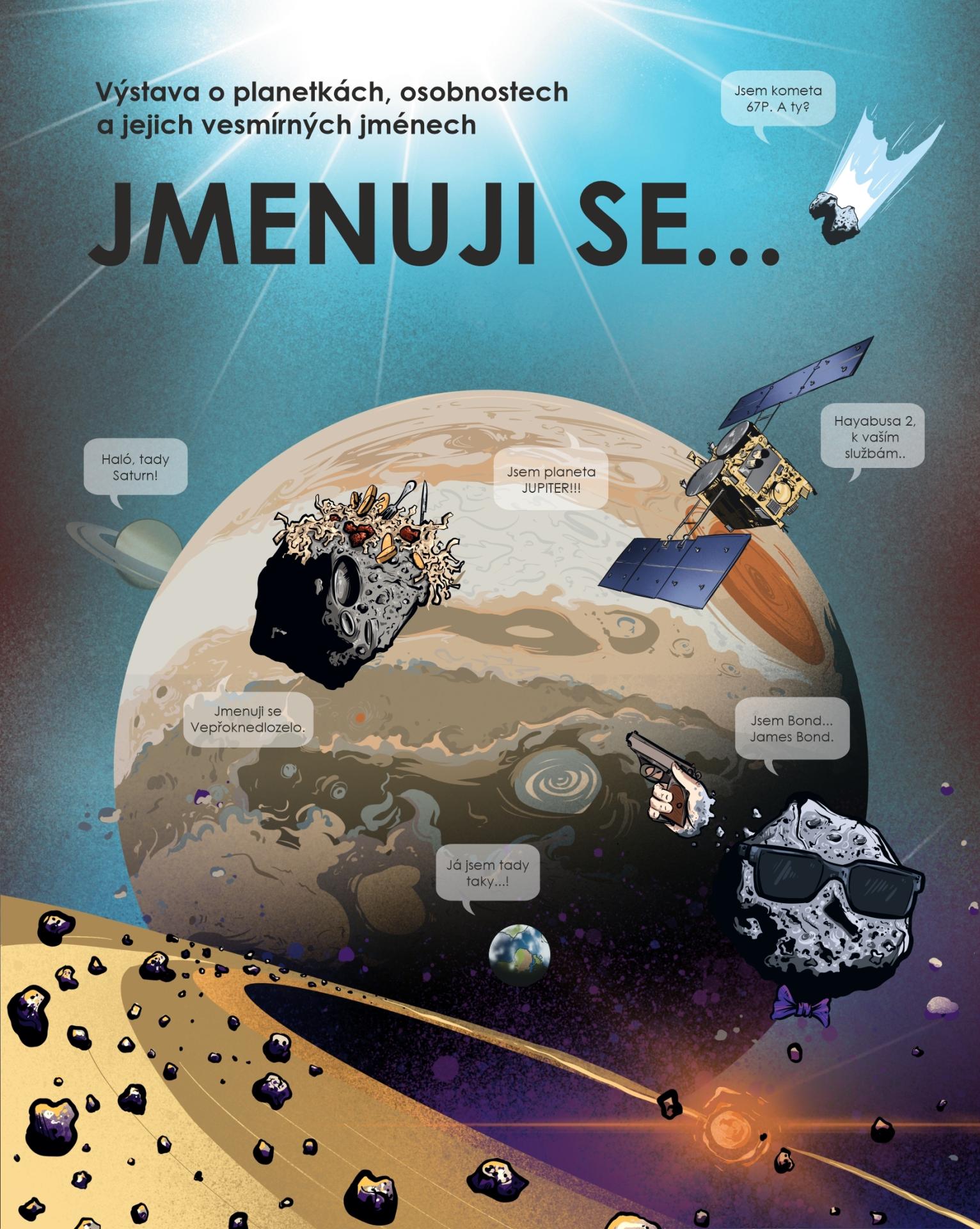 Zbrusu nová výstava o planetkách, osobnostech a jejich vesmírných jménech vás provede světem tajuplných objektů Sluneční soustavy a zaujme výrazným vizuálem ve stylu komiksu, jež jí propůjčují kresby mladého umělce Jana Kubíčka. Spatříte portréty zajímavých osobností, jejichž jména nesou tělesa ve vesmíru a dozvíte se, jak planetky získávají svá pojmenování.