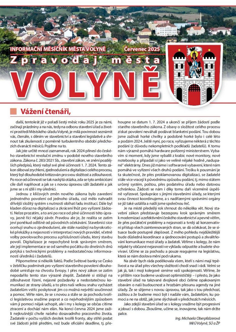 PŘEČTĚTE SI U NÁS: Zpravodaj města Volyně – č. 7/2025