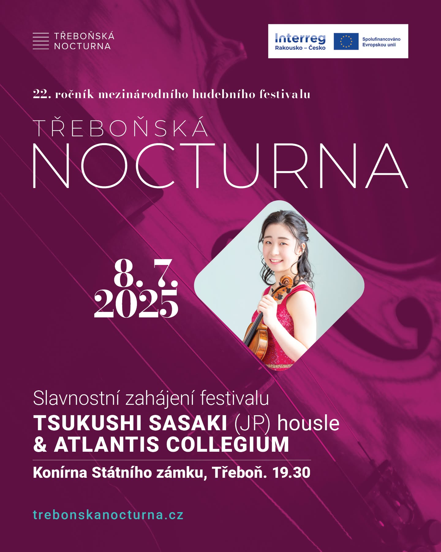 Festival otevře v úterý 8. července japonská houslistka Tsukushi Sasaki, vítězka Mezinárodní hudební soutěže Pražské jaro 2024 za doprovodu komorního orchestru Atlantis collegium. Během koncertu zazní premiéra skladby Romana Haase Pocta lidové písni o vodě, kompozice inspirované rybniční krajinou Třeboňska a motivy české lidové písně. „Drobná skladba variačním způsobem rozvíjí téma lidové písně, jejíž čirá podoba se odkryje až v samotném závěru,“ doplňuje sám Haas.