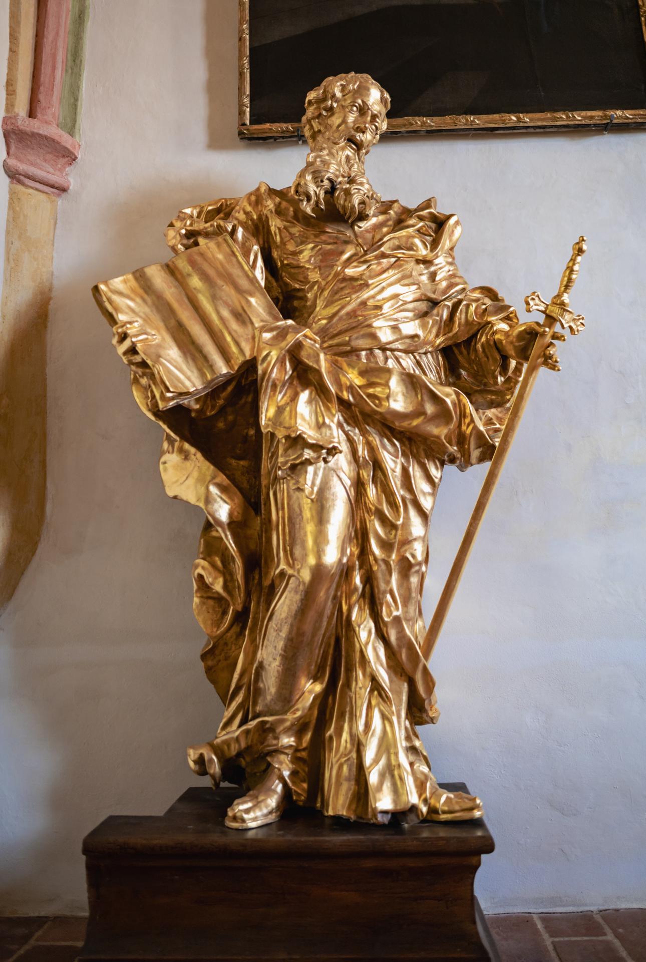 Město Volyně obnovilo nástěnné malby kaple z 19. století, které byly znečištěné a poškozené. Dnes kaple znovu září. Odměna: 80 000 Kč. - 2. místo – Sochy sv. Pavla a sv. Ondřeje, Chlum u Třeboně