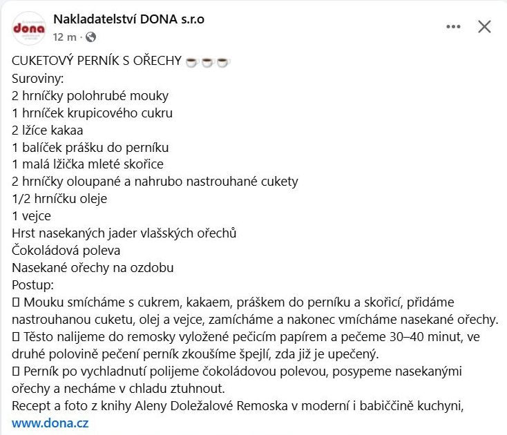 RECEPTY Z KUCHYNĚ: Cuketový perník s ořechy