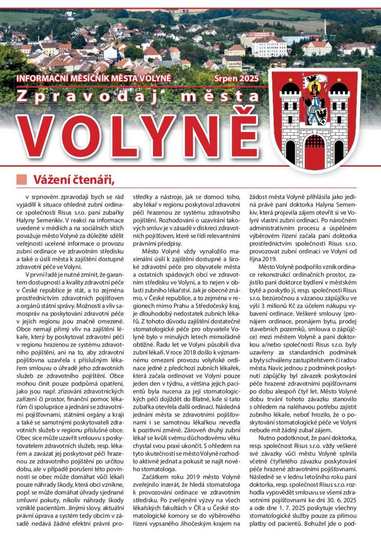 PŘEČTĚTE SI U NÁS: Zpravodaj města Volyně – č. 8/2025