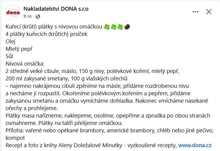 RECEPTY Z KUCHYNĚ: Kuřecí (krůtí) plátky s nivovou omáčkou