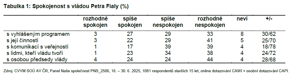 CVVM: Hodnocení vlády Petra Fialy – červen 2025