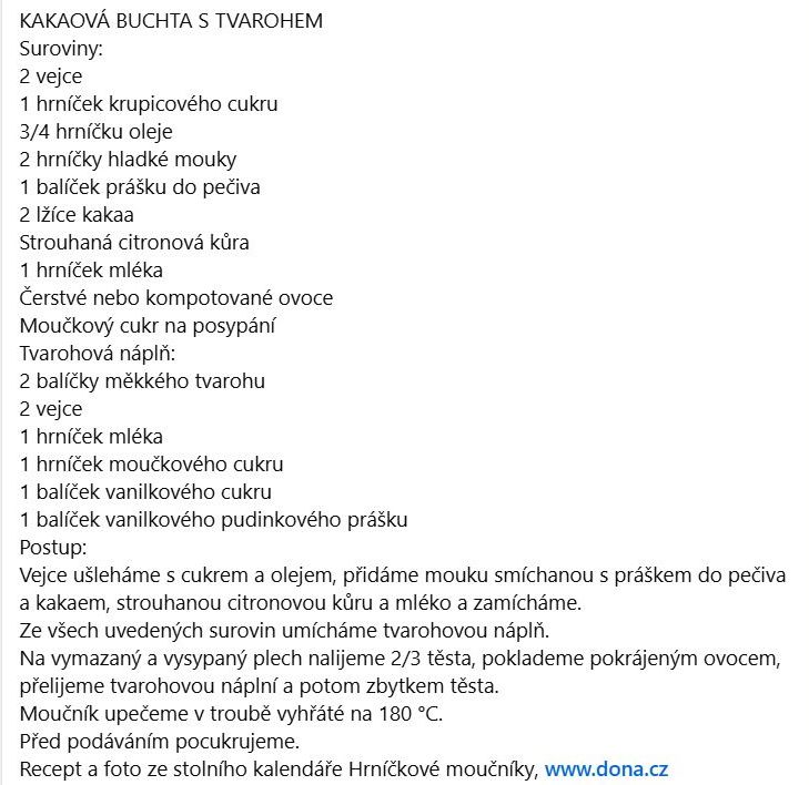 RECEPTY Z KUCHYNĚ: Kakaová buchta s tvarohem