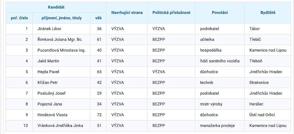 VOLBY 2025: Kandidátní listiny pro Jihočeský kraj – č. 4 VÝZVA 2025