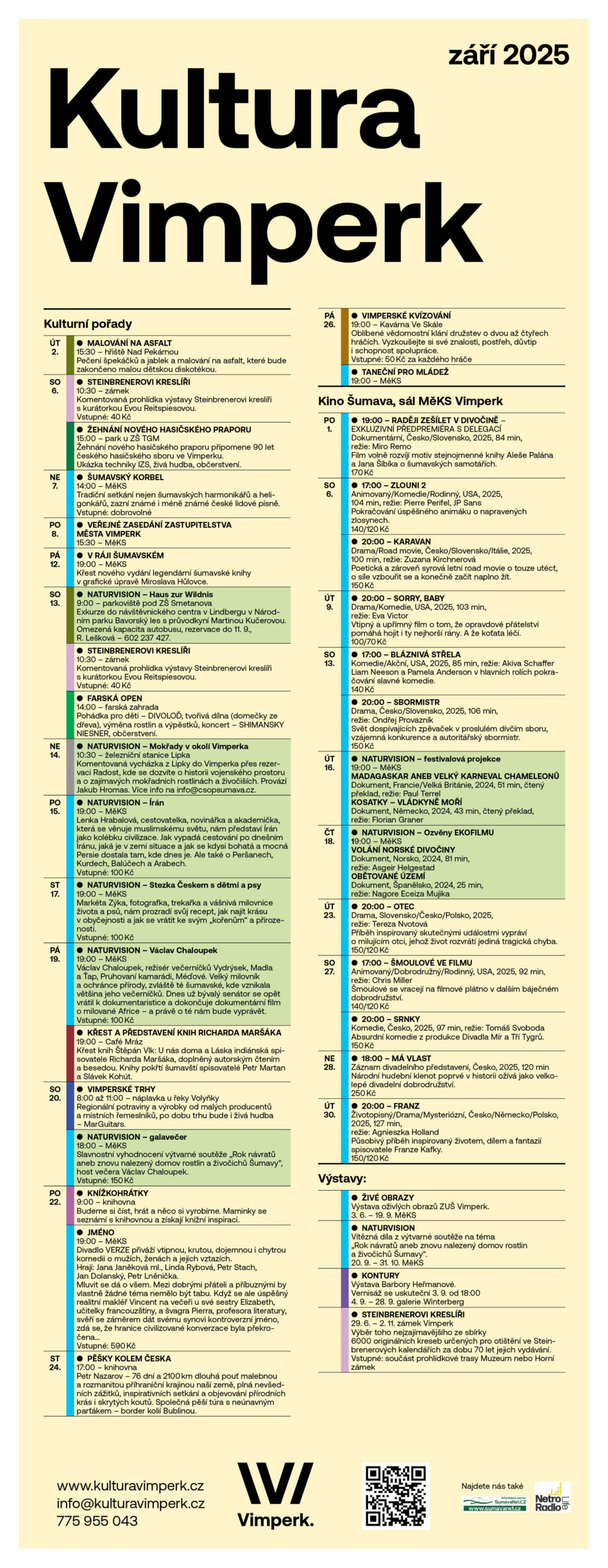 NAŠE MĚSTO VIMPERK: Kultura Vimperk. Přehled programů na září 2025