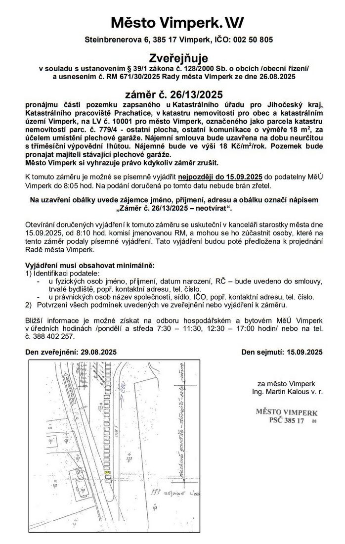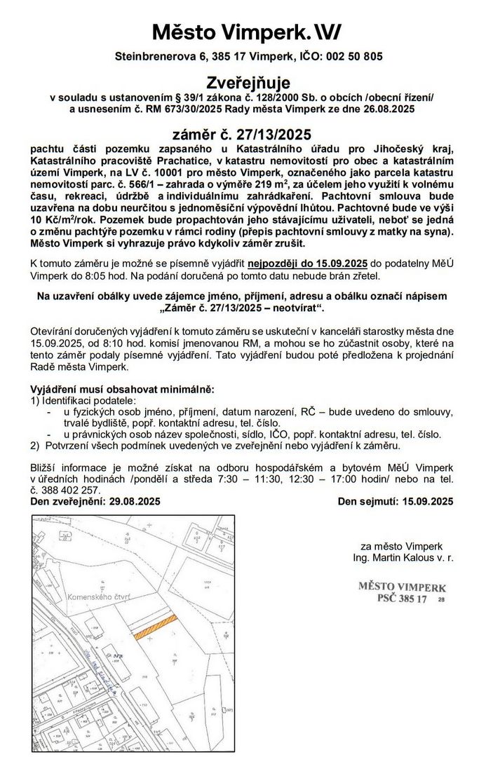 NAŠE MĚSTO VIMPERK: Úřední deska radnice – hospodaření s majetkem