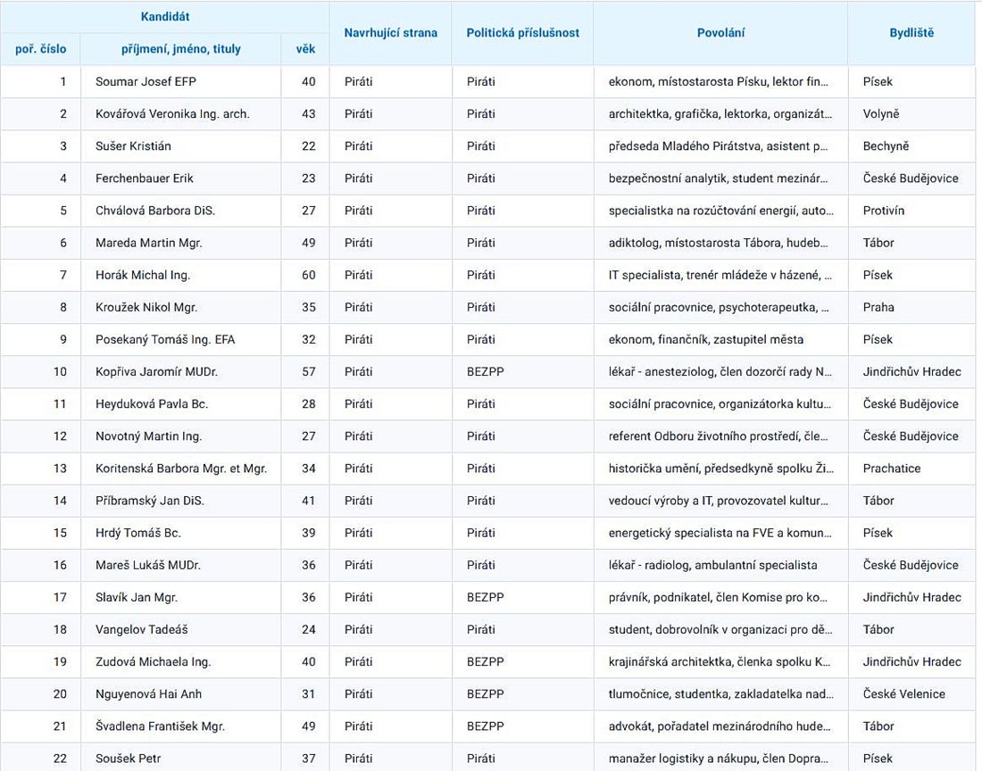VOLBY 2025: Kandidátní listiny pro Jihočeský kraj – č. 16 Česká pirátská strana