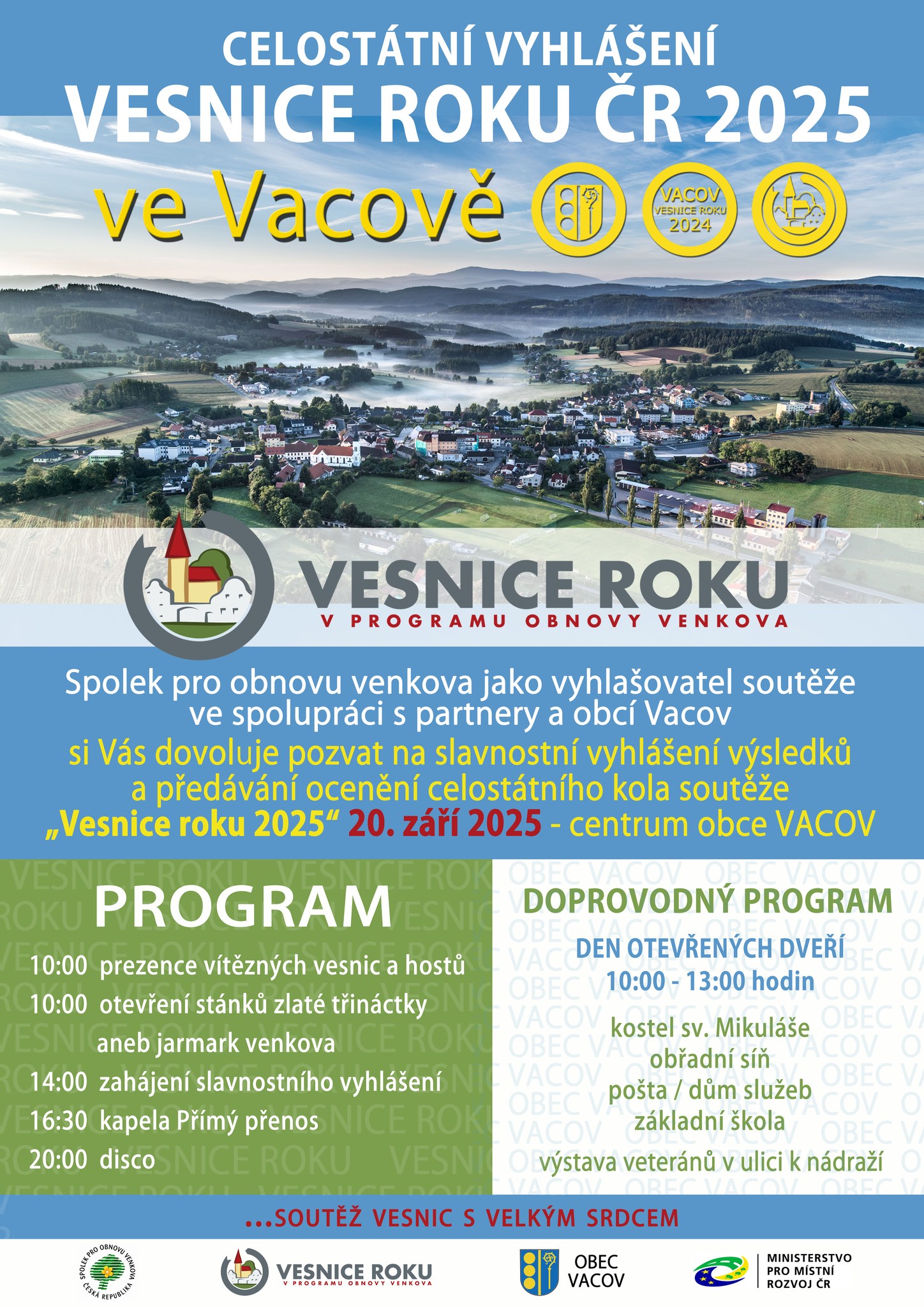 JIŽNÍ ČECHY: Vesnici roku ČR 2025 vyhlásí ve Vacově