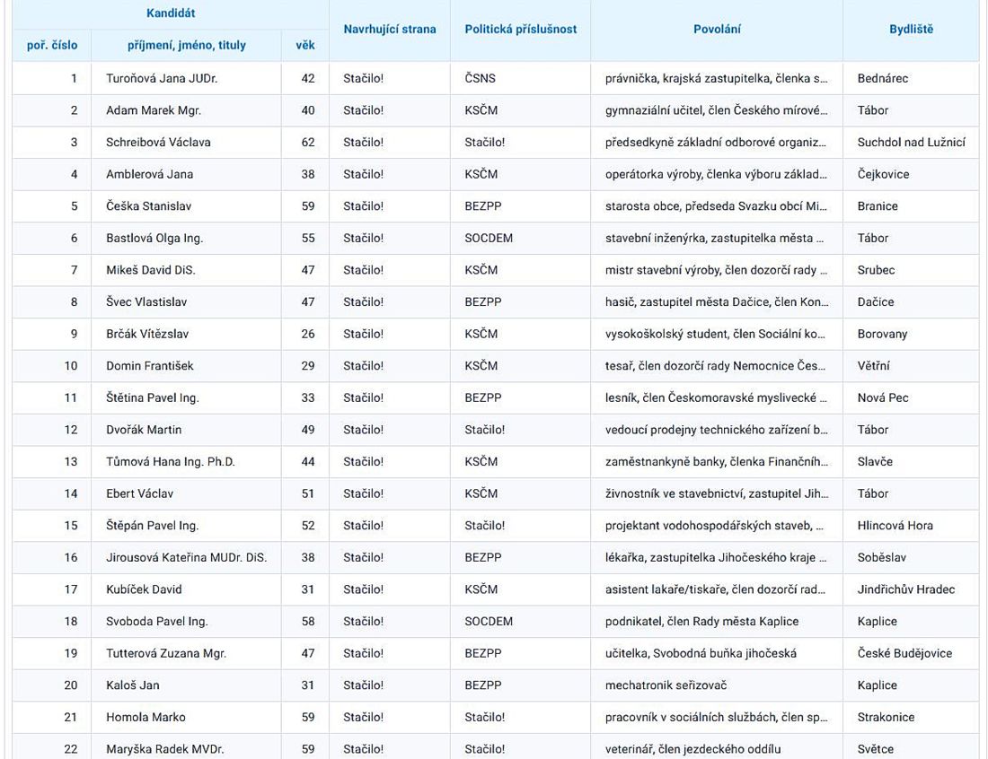 VOLBY 2025: Kandidátní listiny pro Jihočeský kraj – č. 25 Stačilo!
