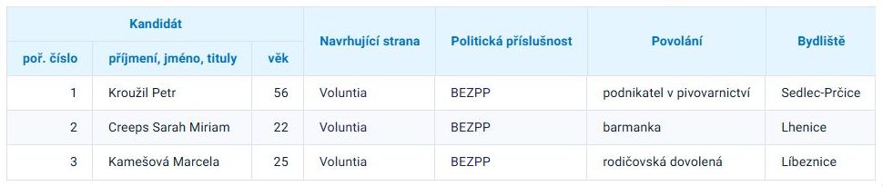 VOLBY 2025: Kandidátní listiny pro Jihočeský kraj – č. 26 Voluntia, protože dobrovol. je zákl. kamenem