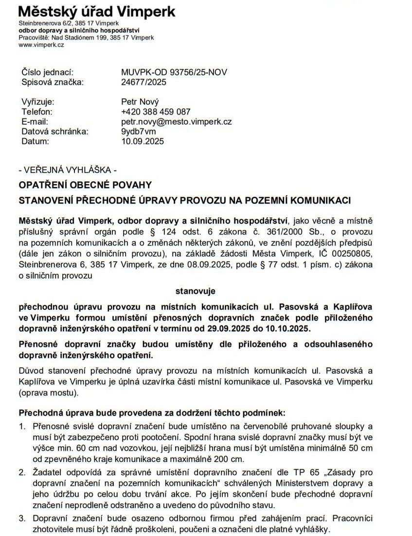 NAŠE MĚSTO VIMPERK: Úplná uzavírka části ulice Pasovská