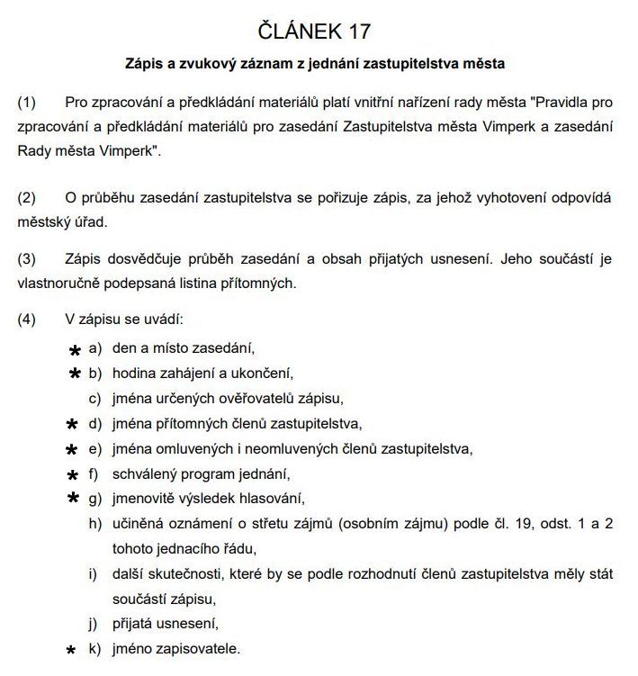 Výsledné produkty digitalizace spisové agendy vimperského městského úřadu jsou v mnoha bodech v rozporu s platnými jednacími řády rady a zastupitelstva města. K vytknutí je toho daleko víc, než zmiňujeme v naší glose Digitalizace spisové agendy.