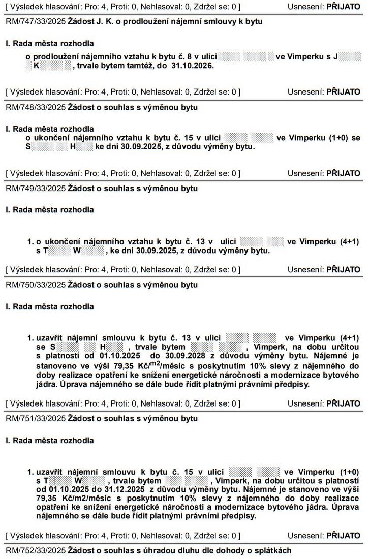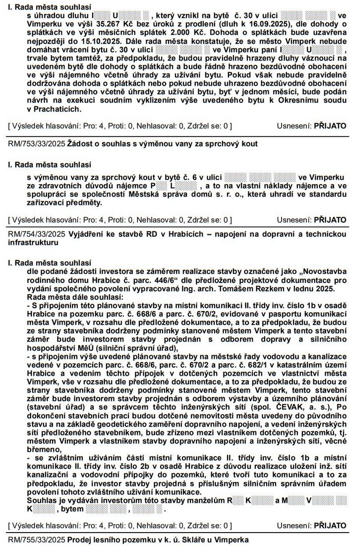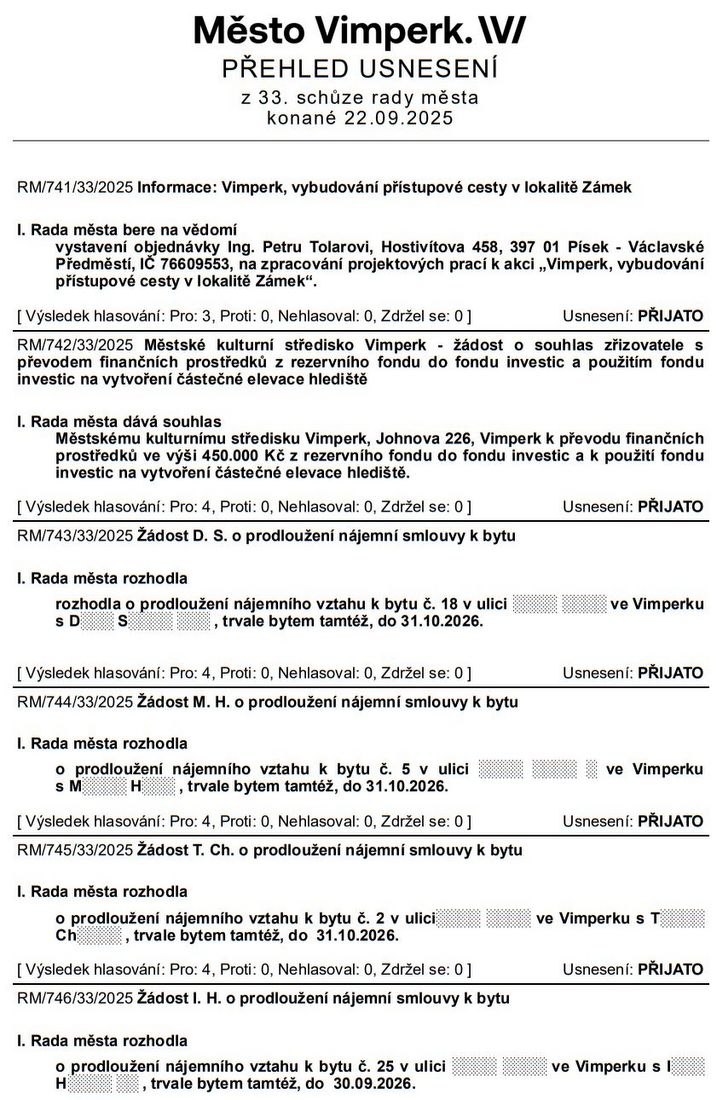 Domů ZPRÁVY Z MĚSTA A OKOLÍ NAŠE MĚSTO VIMPERK: Usnesení ze zasedání rady města konané 22. září 2025