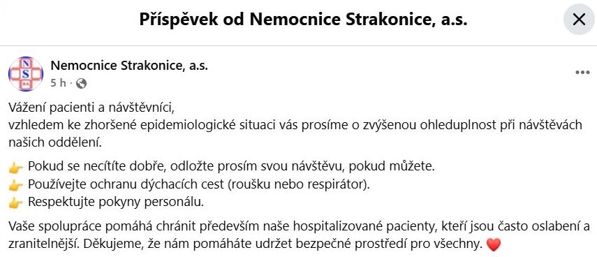 AKTUÁLNĚ: Sdělení Nemocnice Strakonice