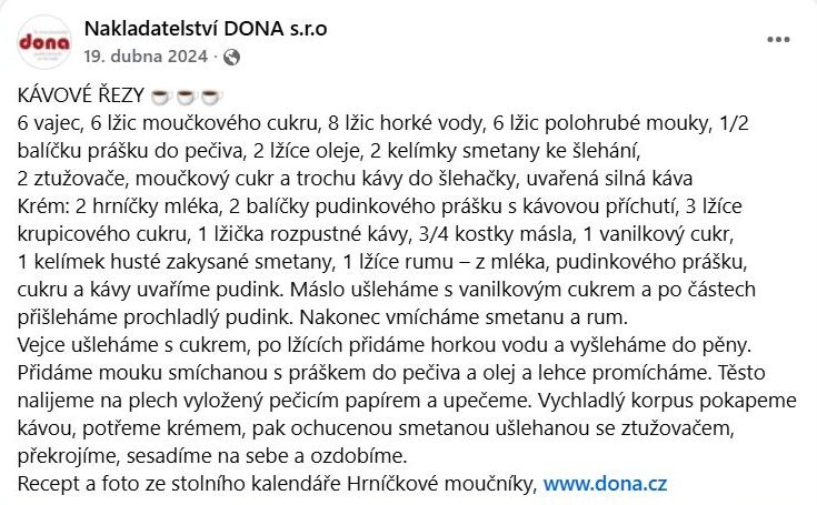 RECEPTY Z KUCHYNĚ: Kávové řezy