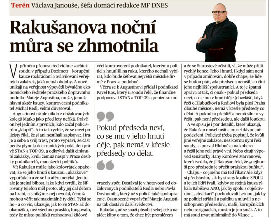 KOMENTÁŘ NA SÍTI: Rakušanova noční můra se zhmotnila