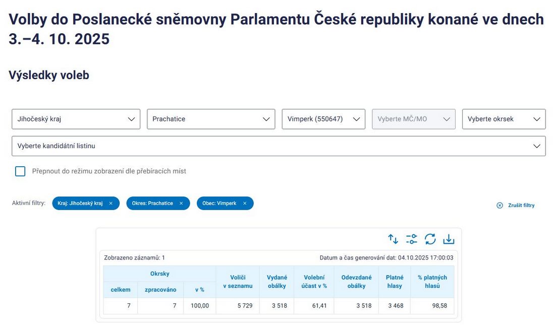 VOLBY 2025: Volby do Poslanecké sněmovny Parlamentu České republiky. Jak jsme hlasovali ve Vimperku