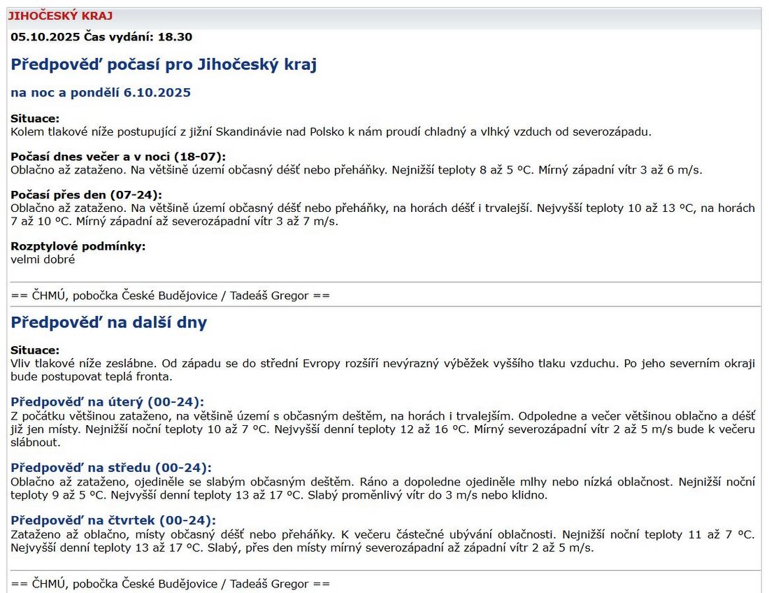 ČESKÝ HYDROMETEOROLOGICKÝ ÚSTAV: Předpověď počasí – 6. října