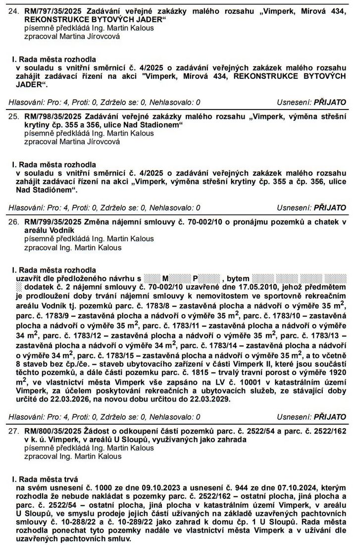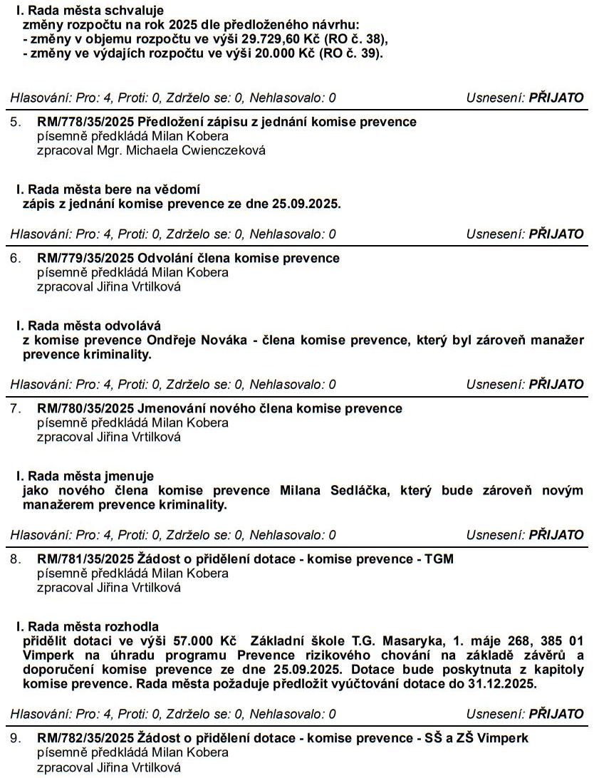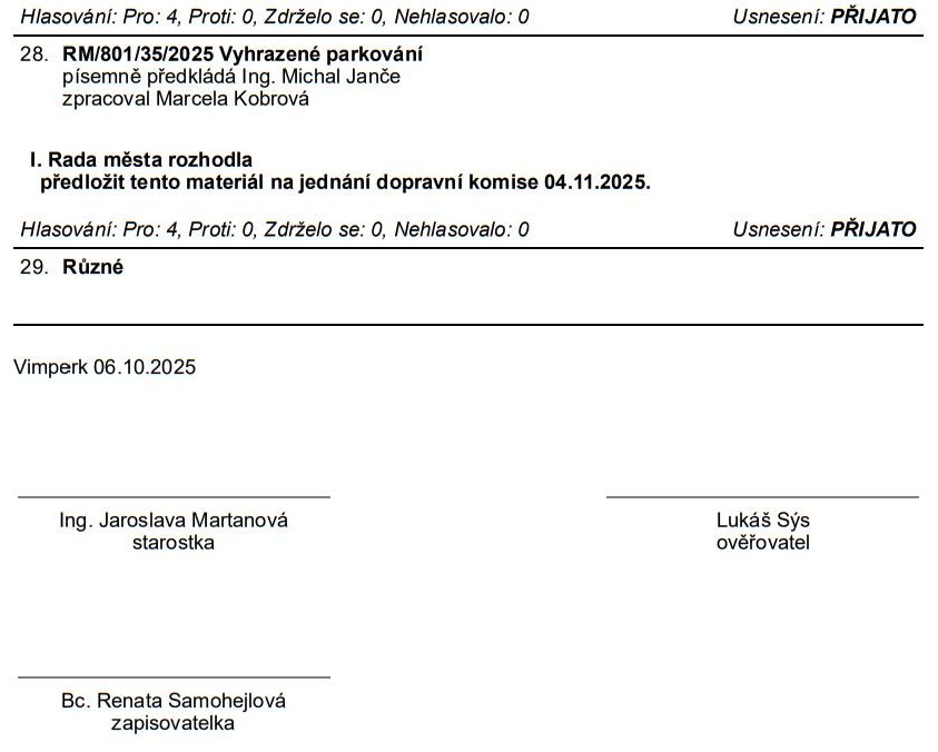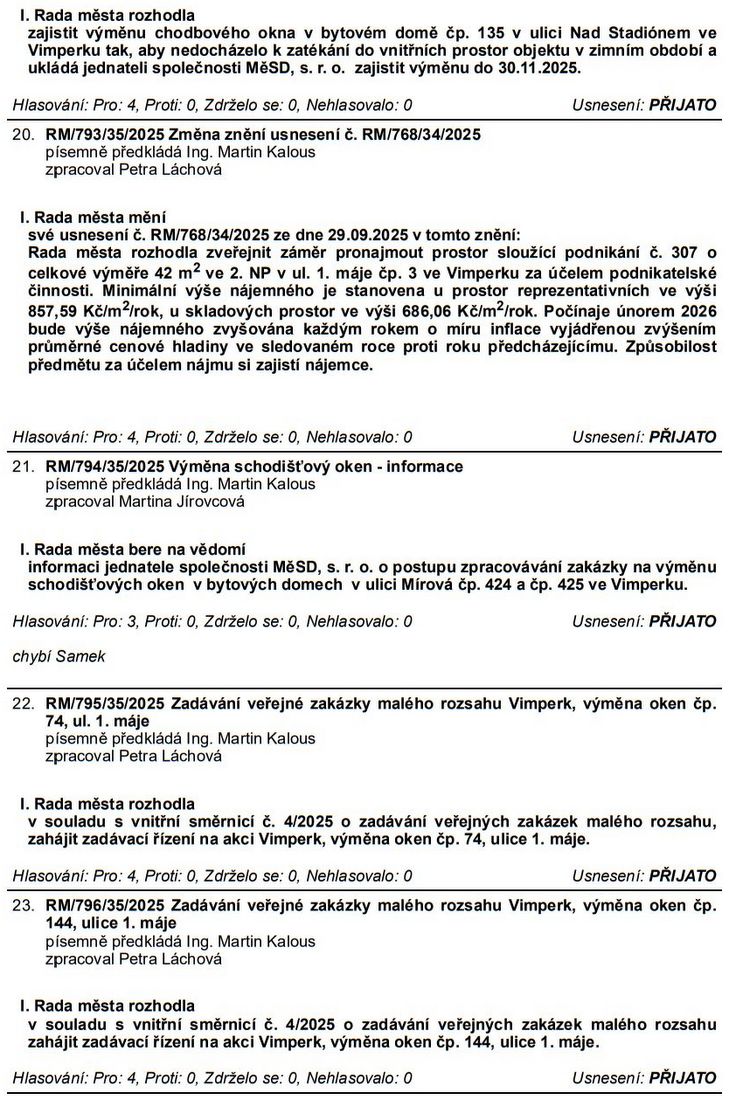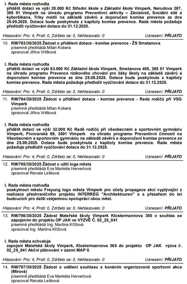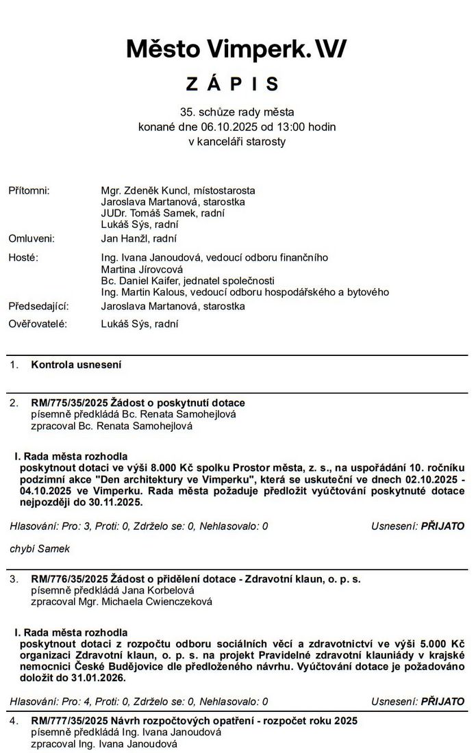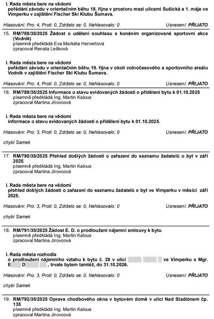 NAŠE MĚSTO VIMPERK: Zápis ze zasedání rady města konané 6. října 2025