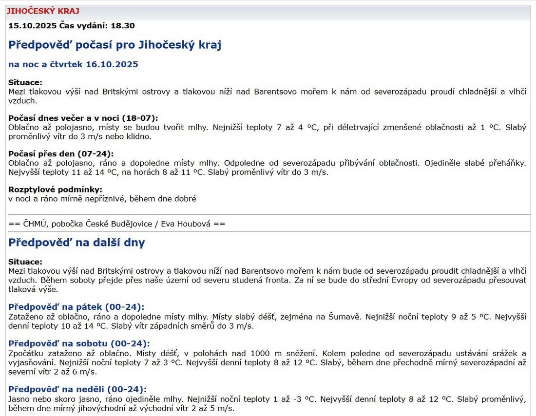 ČESKÝ HYDROMETEOROLOGICKÝ ÚSTAV: Předpověď počasí – 16. října