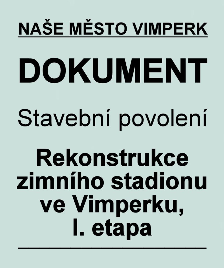 NAŠE MĚSTO VIMPERK – DOKUMENT: Stavební povolení první etapy rekonstrukce zimního stadionu