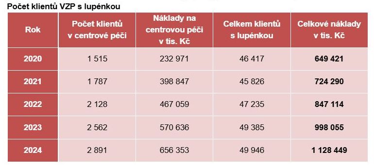 „I když se počet pacientů trpících touto kožní nemocí za poslední roky výrazně nemění, výrazně stoupají náklady na jejich léčbu. Zatímco před 10 lety stála léčba lupénky 421 milionů korun, vloni to byla už miliarda korun,“ říká Jan Bodnár, náměstek ředitel VZP ČR pro zdravotní péči.