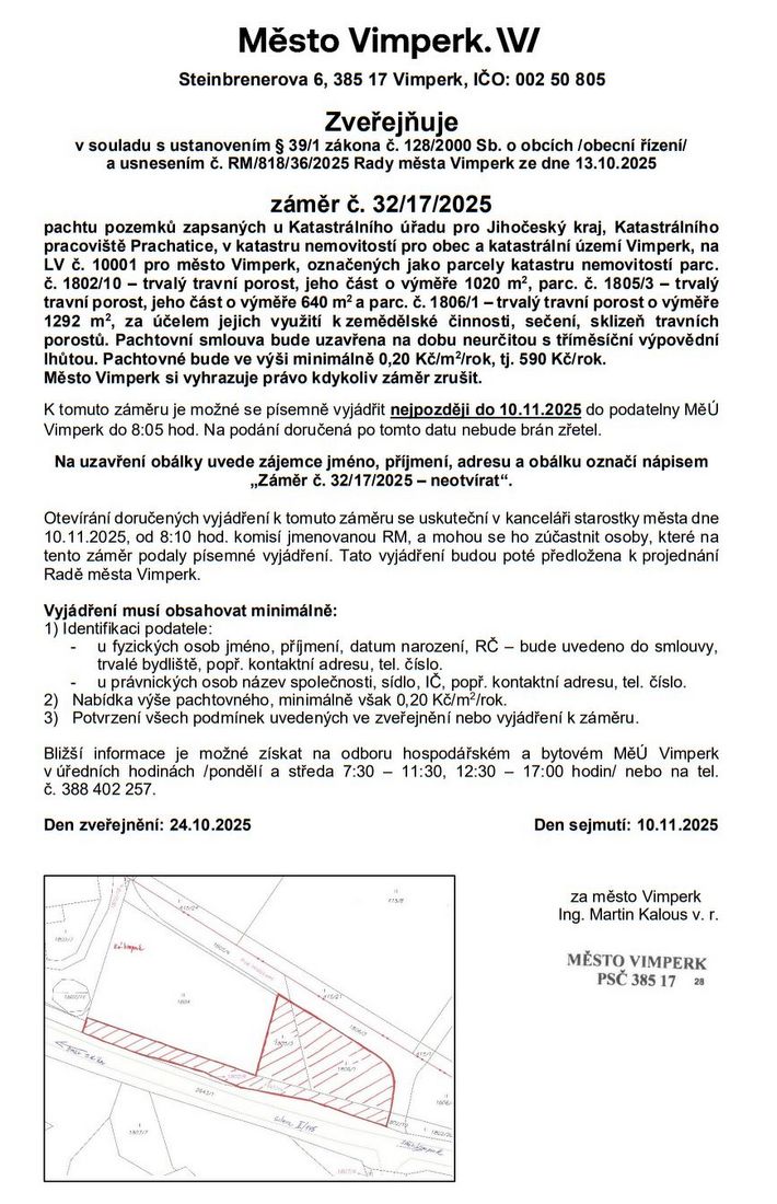 NAŠE MĚSTO VIMPERK: Úřední deska radnice – hospodaření s majetkem