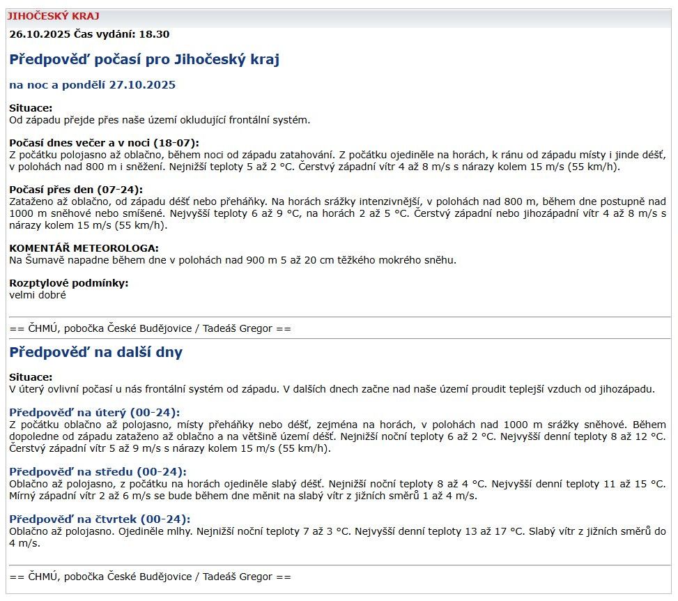 ČESKÝ HYDROMETEOROLOGICKÝ ÚSTAV: Předpověď počasí – 27. října