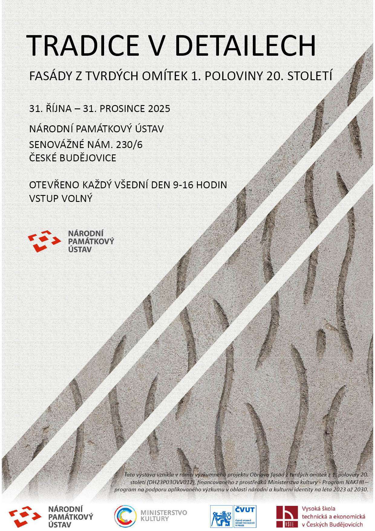 V pátek 31. října bude v galerii Národního památkového ústavu v Českých Budějovicích zahájena nová výstava „Tradice v detailech“, která přibližuje fenomén fasád z tvrdých omítek první poloviny 20. století.