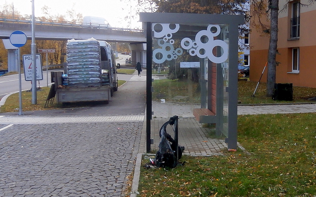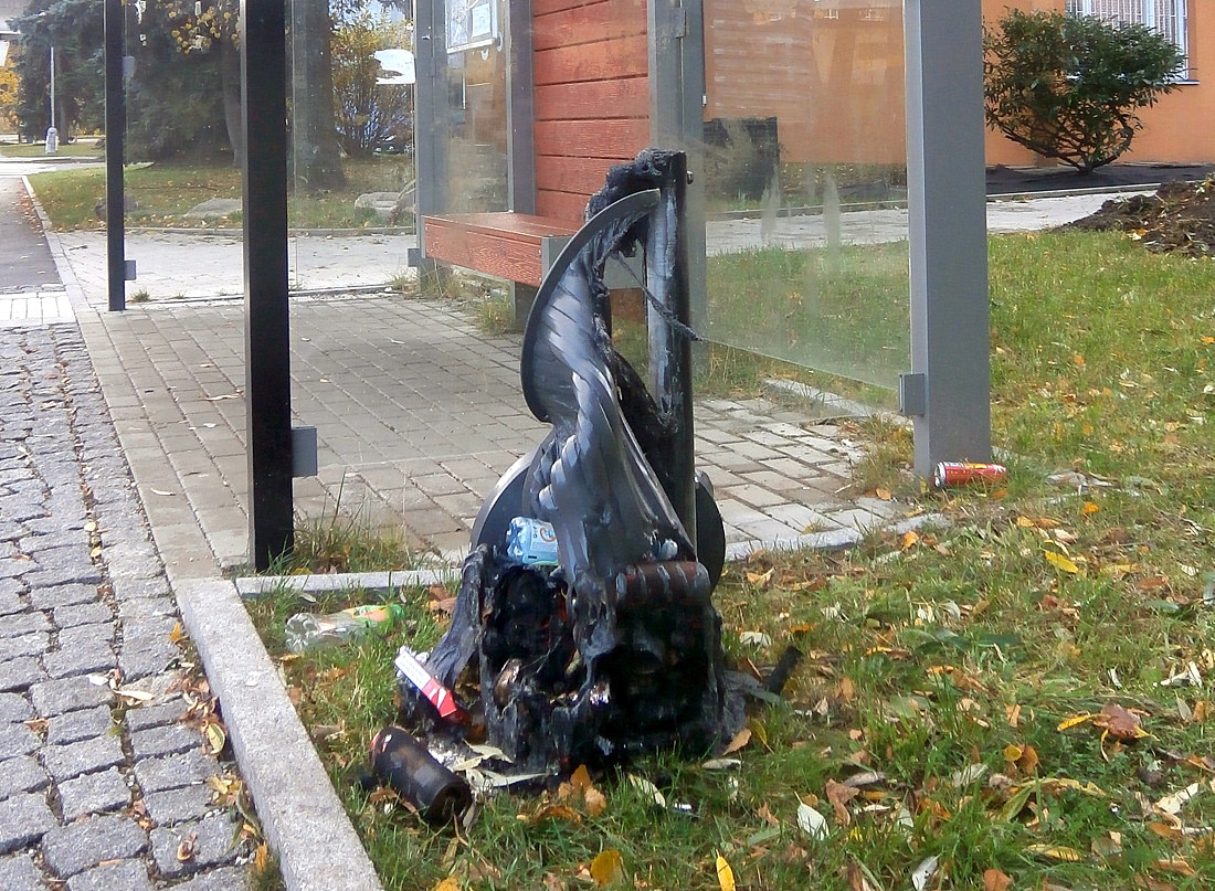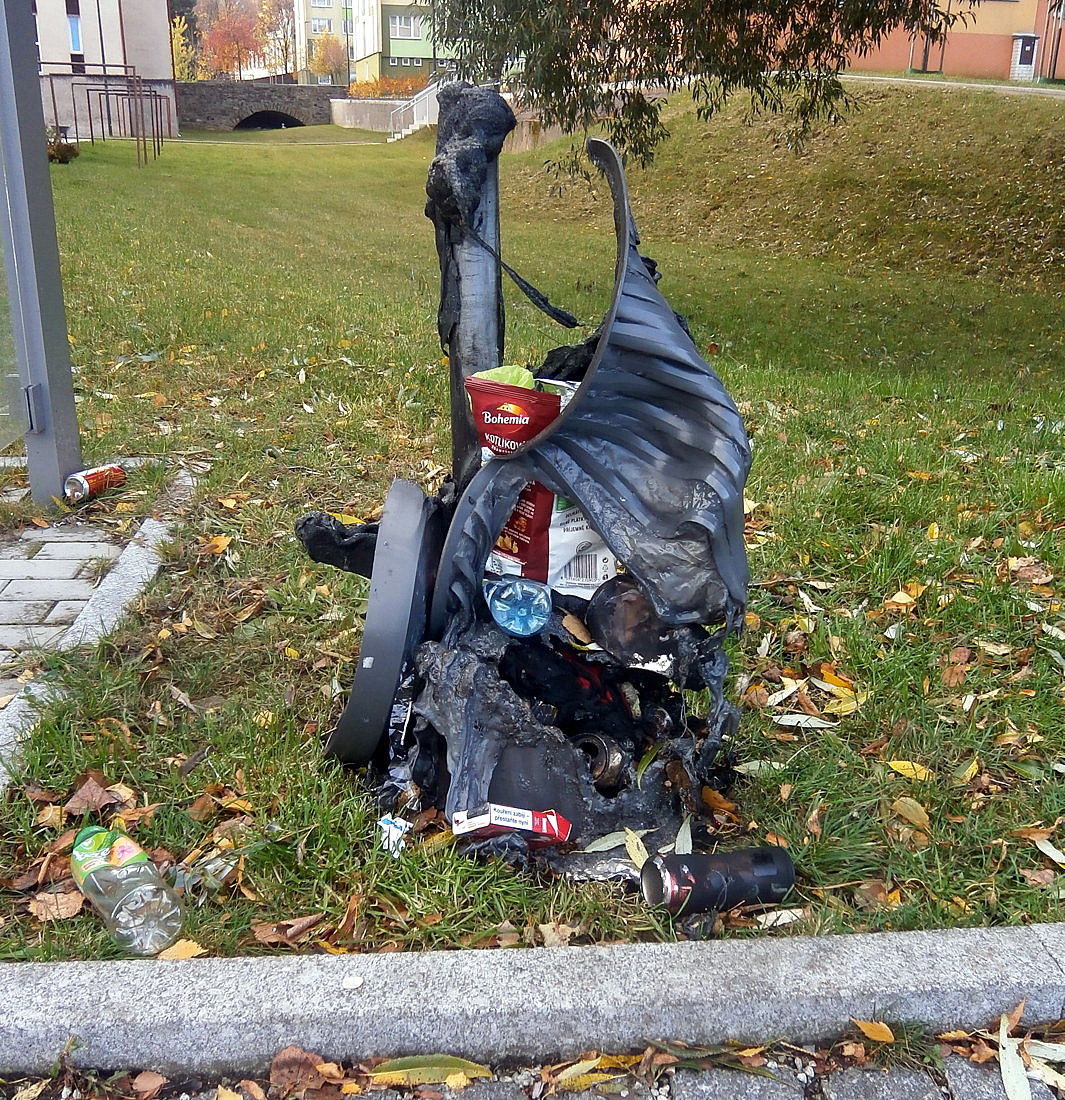 NAŠE MĚSTO VIMPERK: To byl odpadkový koš u autobusové zastávky ve Sklářské ulici