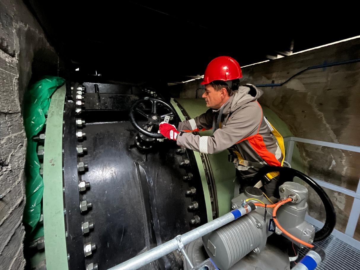 Vlastní výměna trvala dvacet dní, technici k ní použili speciální jeřáb, pomocí kterého uzávěr vytáhli z pětimetrové hloubky. „Velmi precizně jsme přistupovali k napojení nové klapky na stávající potrubí. To je zajištěno pomocí přírubových spojů, kde jsme na každé straně museli utáhnout hned 76 matic,“ doplnil Miloš Mojha, projektový manažer.