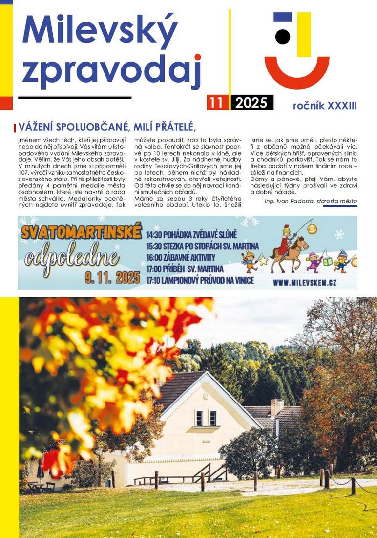 PŘEČTĚTE SI U NÁS: Milevský zpravodaj – č. 11/2025