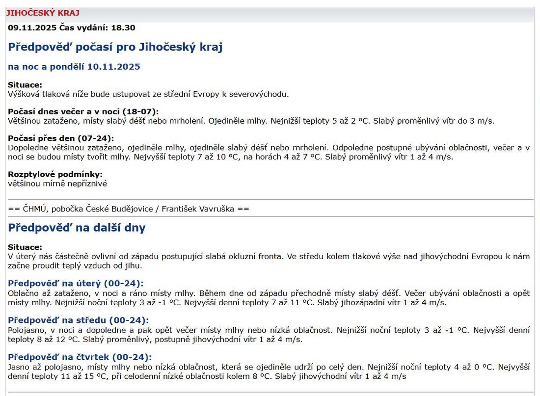 ČESKÝ HYDROMETEOROLOGICKÝ ÚSTAV: Předpověď počasí – 10. listopadu