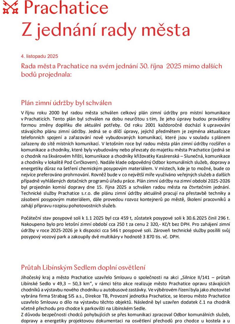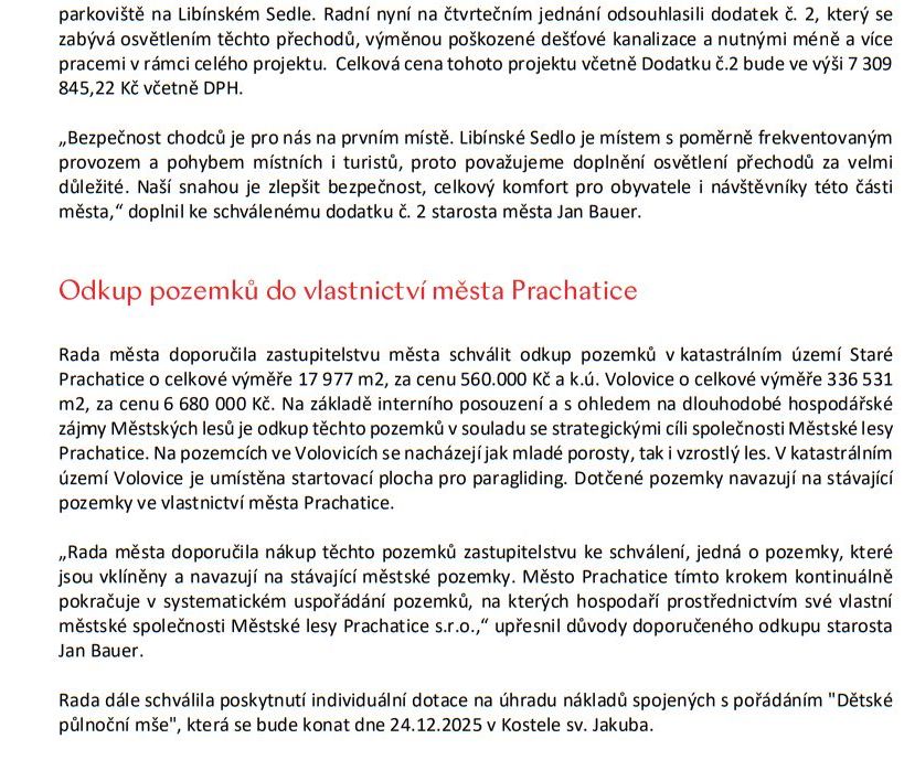 JIŽNÍ ČECHY: Co se děje v Prachaticích. Informace ze schůze městských radních – 20. října 2025