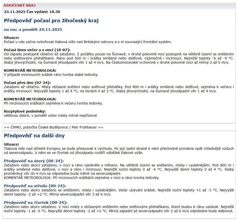 ČESKÝ HYDROMETEOROLOGICKÝ ÚSTAV: Předpověď počasí – 24. listopadu