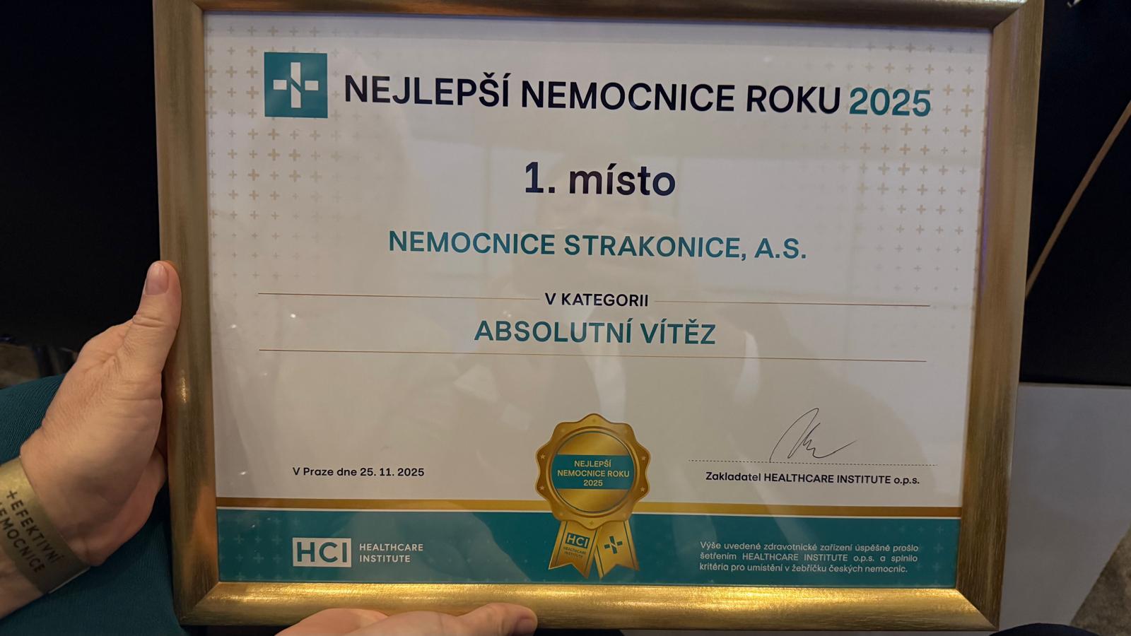 Nemocnice Strakonice získala v letošním ročníku celostátního projektu HealthCare Institute (HCI) ocenění „Nejlepší nemocnice roku 2025“. Jubilejní 20. ročník celostátního projektu oslovil 148 nemocnic s akutními lůžky napříč Českou republikou a poskytl komplexní pohled na kvalitu zdravotní péče. Hodnocení, které se konalo od 1. února do 31. srpna, vychází z mezinárodně uznávané metodiky Balanced Scorecard a zaměřuje se na finanční stabilitu, bezpečnost, spokojenost pacientů i zaměstnanců.