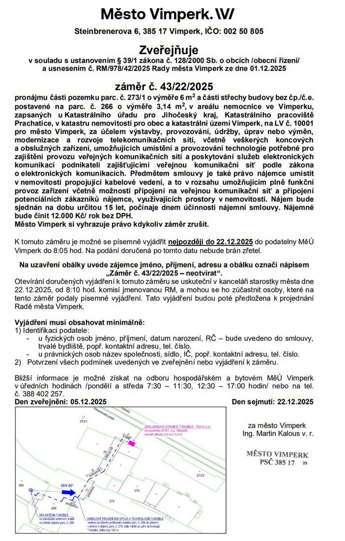NAŠE MĚSTO VIMPERK: Úřední deska radnice – hospodaření s majetkem