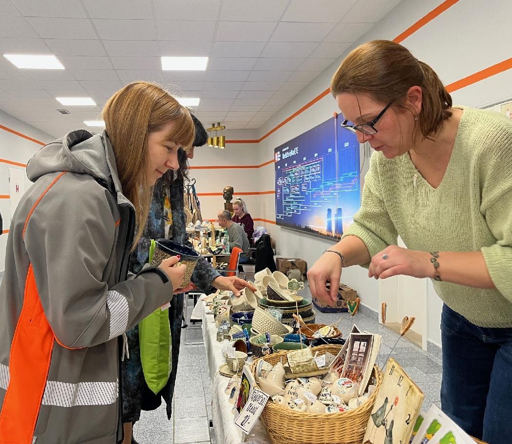 Na chodbě administrativní budovy temelínské elektrárny se v době oběda linula vůně kávy a vánočního cukroví. Vše doplňovala vánoční hudba a výrobky dvou chráněných dílen. Ty temelínským zaměstnancům tentokrát představily chráněné dílny Rosnička ze Soběslavi a Nazaret z Borovan. „Přivezli jsme výrobky z keramiky, na kterou se v naší chráněné dílně specializujeme. Zaměstnanci elektrárny byli moc milí a je vidět, že chtějí pomáhat. Výtěžek z prodeje využijeme na částečné pokrytí nákladů spojených s pořízeném nové pece,“ uvedla Zuzana Dvořáková z Nazaret Borovany.