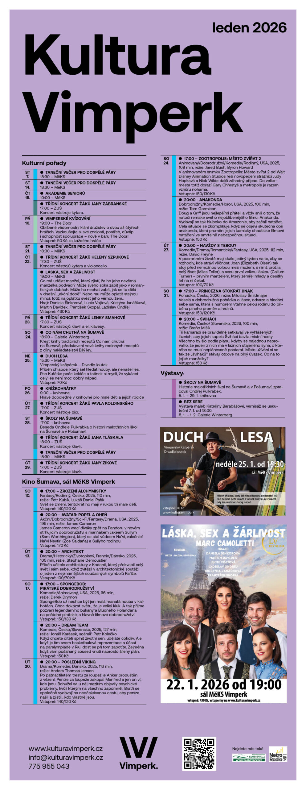 NAŠE MĚSTO VIMPERK: Kultura Vimperk. Přehled programů na leden 2026
