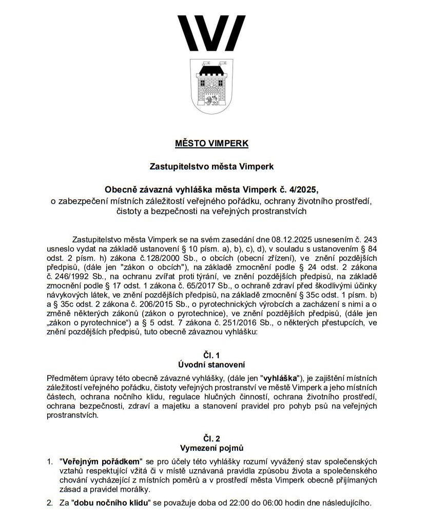 NAŠE MĚSTO VIMPERK – DOKUMENT: Vyhláška – veřejný pořádek