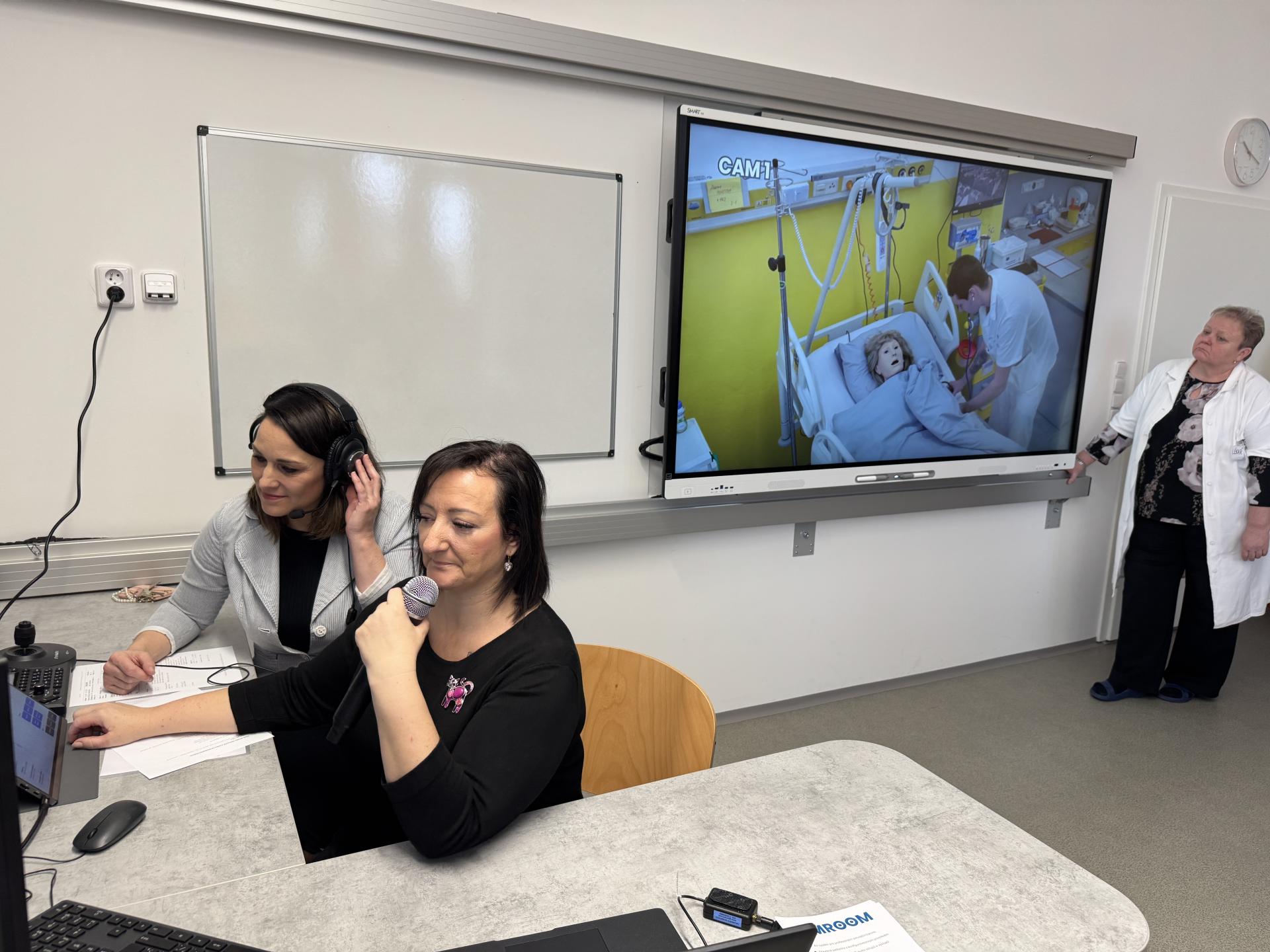 Součástí slavnostního zahájení byly také praktické ukázky simulací v podání žáků školy. Studentky třetího ročníku střední zdravotnické školy Marie Staňková a Kristýna Zemanová předvedly, jak celý systém funguje v praxi. V rámci simulace se zaměřily na péči o pacientku s pneumonií, která se jako těžká diabetička dostala do stavu hypoglykemie. Úkolem studentek bylo správně vyhodnotit zdravotní stav pacientky a adekvátně na vzniklou situaci reagovat.