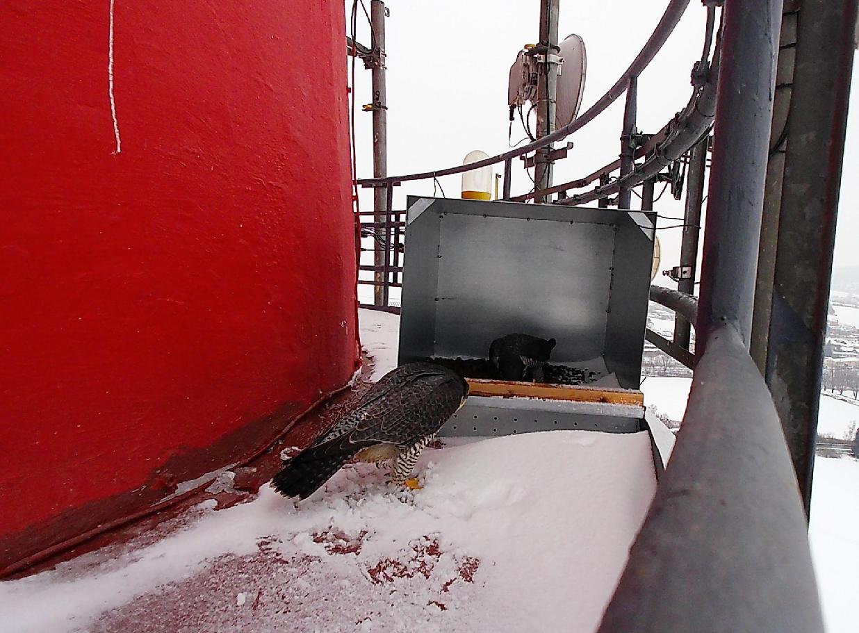 „Díky fotopastem u hnízd víme, že na teplárenském komíně je celý dospělý pár a samec nosí samici k budce potravu. Je zde tedy velká pravděpodobnost, že zahnízdí,“ uvedl odborný garant akce Libor Šejna ze Záchranné stanice živočichů Makov.