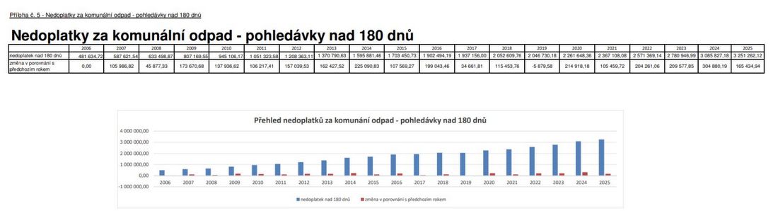 NAŠE MESTO VIMPERK – DOKUMENT: Nedoplatky za komunální odpad – pohledávky nad 180 dnů