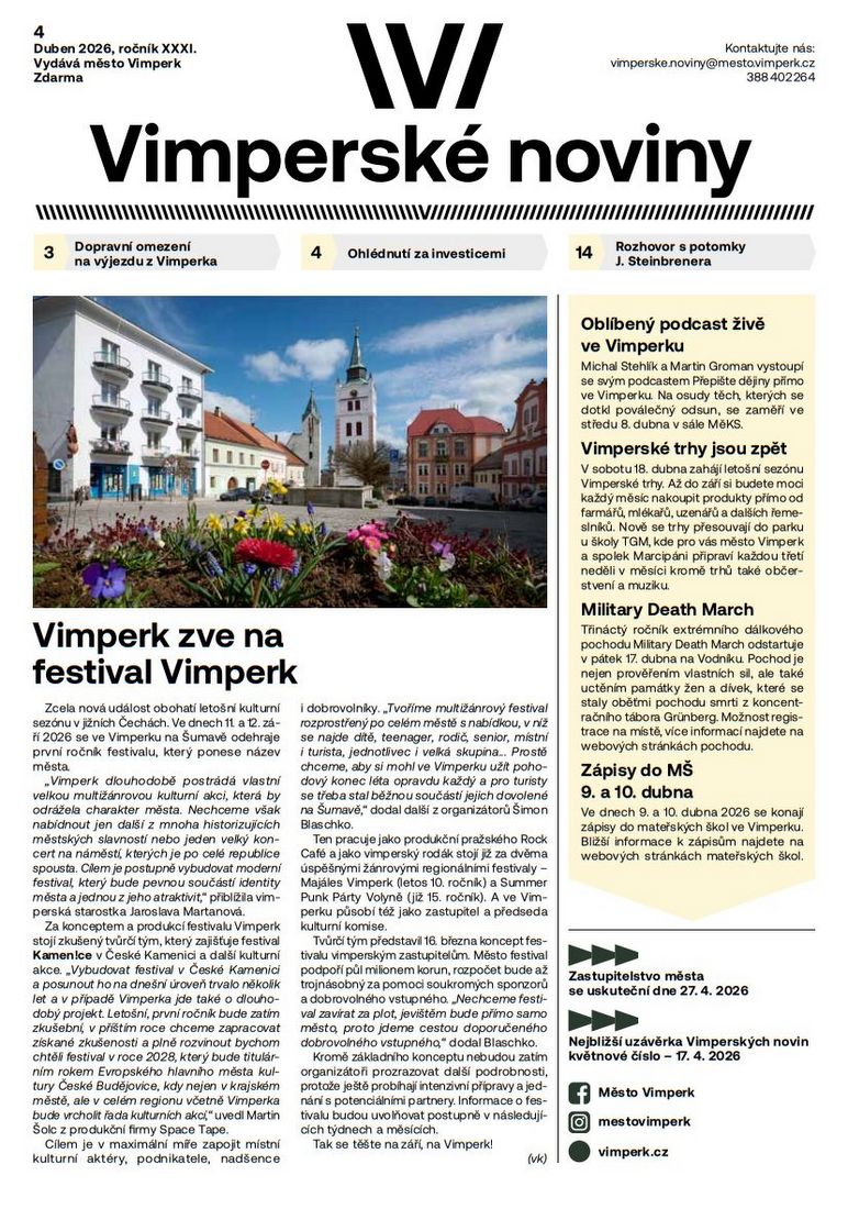 PŘEČTĚTE SI U NÁS: Vimperské noviny – č. 4/2026