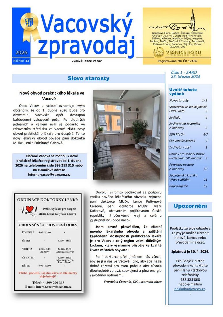PŘEČTĚTE SI U NÁS: Vacovský zpravodaj – jaro 2026